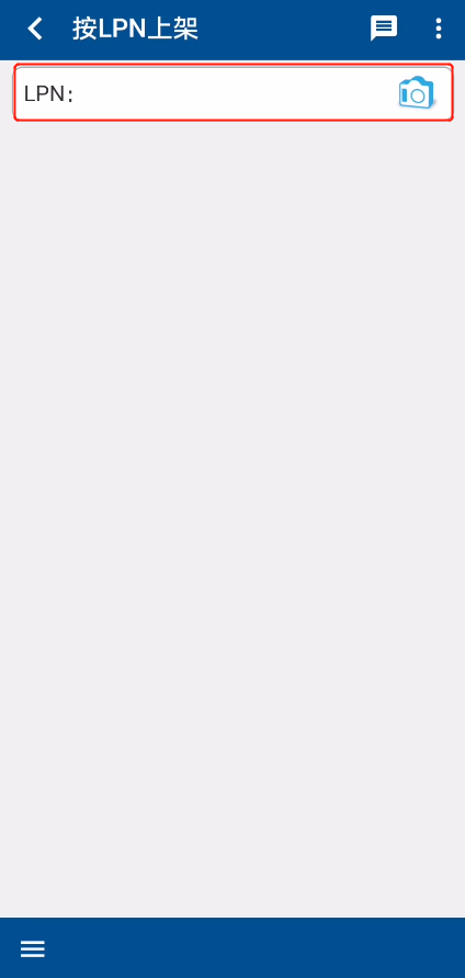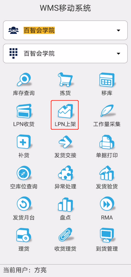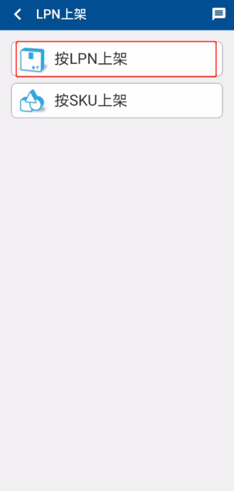RF终端【WMS】系统操作步骤:在首页点击进入【LPN上架】(图1.4.2)。