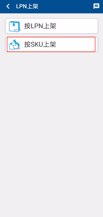 ① 退货入库多为散件商品,上架组员在系统首页点击进入【LPN上架】后,应选择【按SKU上架】(图1.4.9、图1.4.10)。