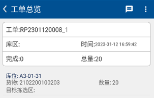 ① 根据【工单总览】的货位提示,找到对应的货位(图3.2.5)。